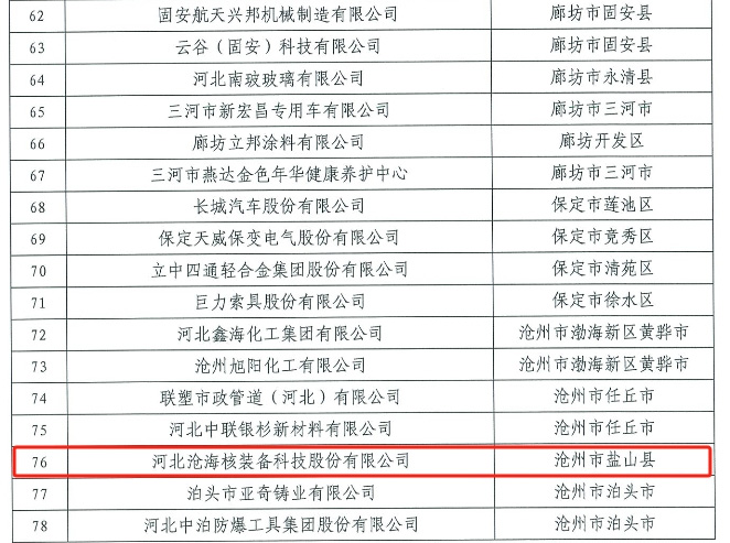 近日,河北省質量強省戰(zhàn)略領導小組發(fā)布通知,河北滄海核裝備科技股份有限公司入選河北省質量強省建設領軍企業(yè)培育名單,這也是滄海核裝獲得政府質量獎后獲得的又一質量建設領域的榮譽資質。